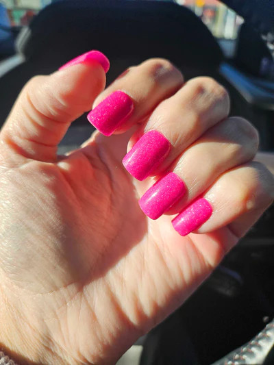 D1419 Lurelight is a shimmery magenta shade that glows violet.