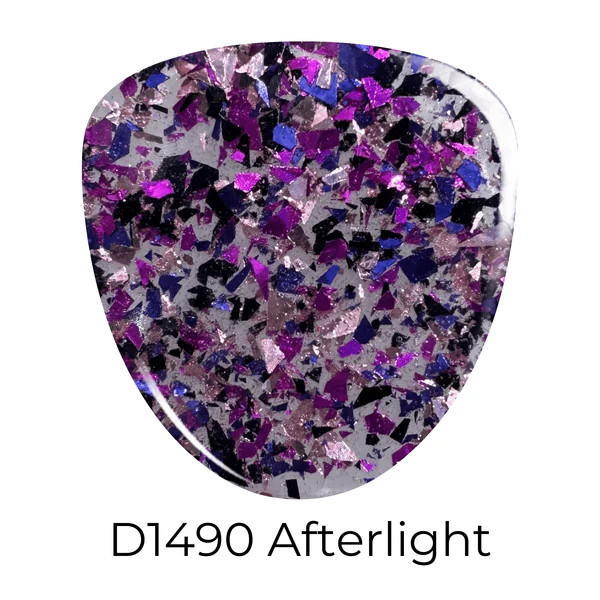 Afterlight is a vibrant, jewel-toned mix of bold flakes that include vivid fuchsia, electric violet, and fiery rose gold. The metallic shards catch the light dramatically, creating a rich, multidimensional sparkle.