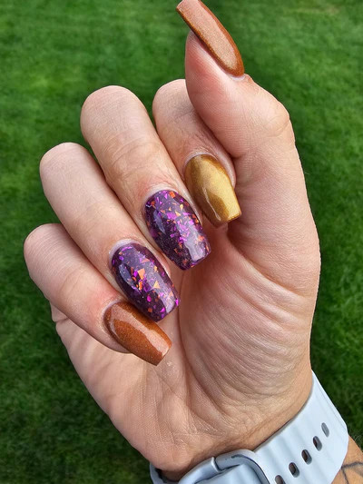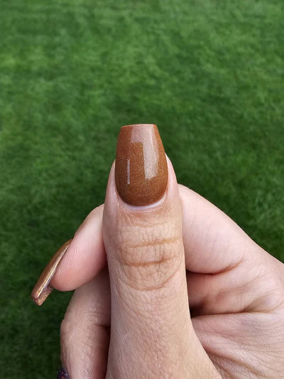 Penny is a copper shade with bright copper glitter. Penny can also be chromed!
